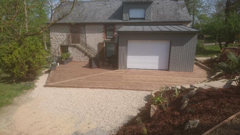 Votre paysagiste basé à Côté de Rennes, et qui intervient dans toutes les communes à proximité de Rennes, vous présente une de ses créations de terrasse en bois.
