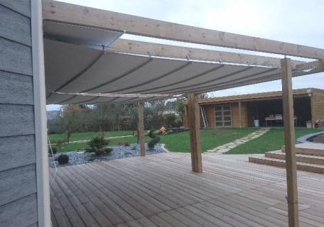 Création pergola bois & toiles sur câbles